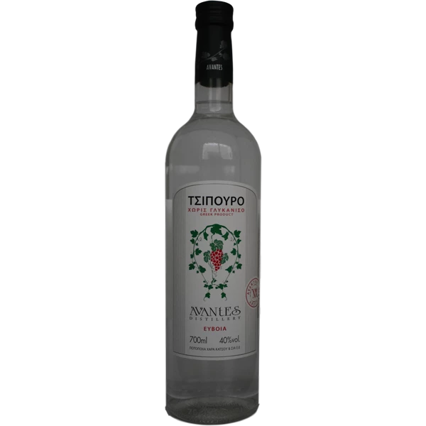 Το τσίπουρο της Ποτοποιίας Άβαντες, που βρίσκεται στην Εύβοια, παράγεται με παραδοσιακό τρόπο, με απόσταξη επιλεγμένων ποικιλιών σταφυλιού. Διακριτικό μπουκέτο αρωμάτων, φρούτα και μακρά επίγευση, που αναδεικνύονται τέλεια πίνοντάς το παγωμένο, με λίγες σταγόνες νερού.