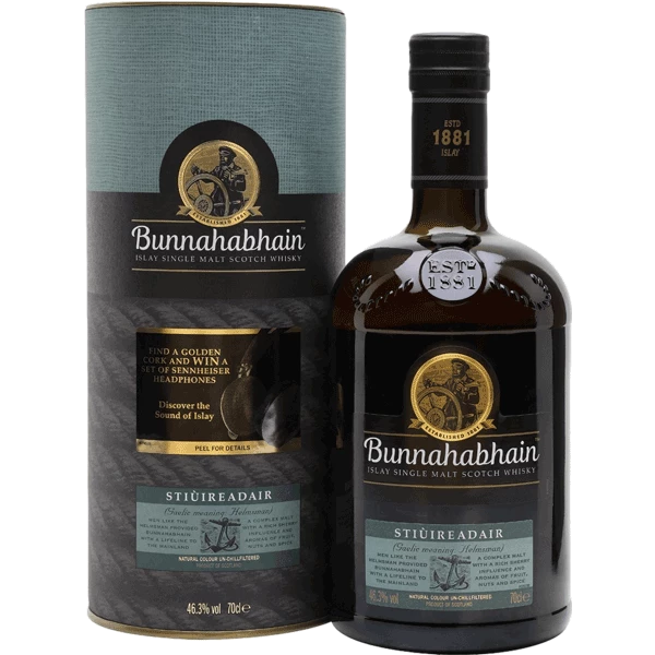 To Stiùireadair είναι η πρώτη περιορισμένη έκδοση του αποστακτηρίου, με σκοπό να αποτίσουν φόρο τιμής στον καπετάνιο Bunnahabhain, ο οποίος κοσμεί κάθε μπουκάλι. Με μια θαλάσσια αύρα και νότες αποξηραμένων φρούτων χαρίζει τη μέγιστη απόλαυση. Πλούσιο στο στόμα, με υπέροχη αίσθηση φρεσκάδας και αρωματικό πλούτο που θα σας εκπλήξει. Αρώματα ζάχαρης, σταφίδας και καραμέλας συνυπάρχουν σε ένα σύνολο εξαιρετικό που ολοκληρώνεται με νύξεις μελιού, καρυδιών αλλά και αλατιού.