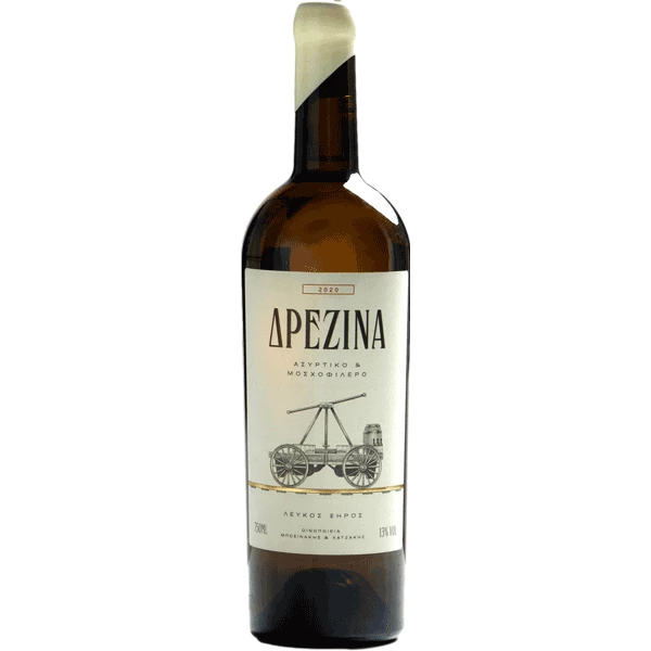 Η Δρεζίνα είναι ένα όχημα που θέλει προσπάθεια από δύο ανθρώπους για να κινηθεί, έτσι και στην συγκεκριμένη ετικέτα συνεργάζονται τα οινοποιεία Μποσινάκη και Χατζάκη, δύο οικογένειες με την ίδια φιλοσοφία και προσέγγιση για το κρασί. Ο τρύγος γίνεται σε διαφορετικές χρονικές περιόδους, μέσα Οκτώβρη για το Μοσχοφίλερο και αρχές Αυγούστου για το Ασύρτικο και το κρασί είναι χαρμάνι 50%-50%.