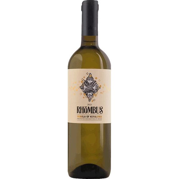 Το όνομα της ετικέτας Rhombus προέρχεται από την λέξη ρόμβος, σχήμα στο οποίο δόθηκαν μαγικές και τελετουργικές ιδιότητες και υπονοεί την ικανότητα του κρασιού αυτού να μας γοητεύει, ένα κρασί 100% από την ποικιλία Ρομπόλα.