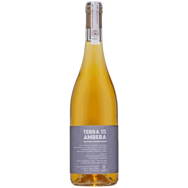 Το Terra Ambera Deep Skin είναι ένα πορτοκαλί ήπιας οινοποίησης από το ηφαιστειογενές νησί της Λήμνου, από Μοσχάτο Αλεξανδρείας. Η συγκομιδή πραγματοποιείται με το χέρι και στη συνέχεια παραμένει με τους φλοιούς του για 4 μήνες, πριν το κρασί μεταφερθεί σε μια ανοξείδωτη δεξαμενή για απολάσπωση και εμφιάλωση, απουσία σταθεροποίησης και φιλτραρίσματος.