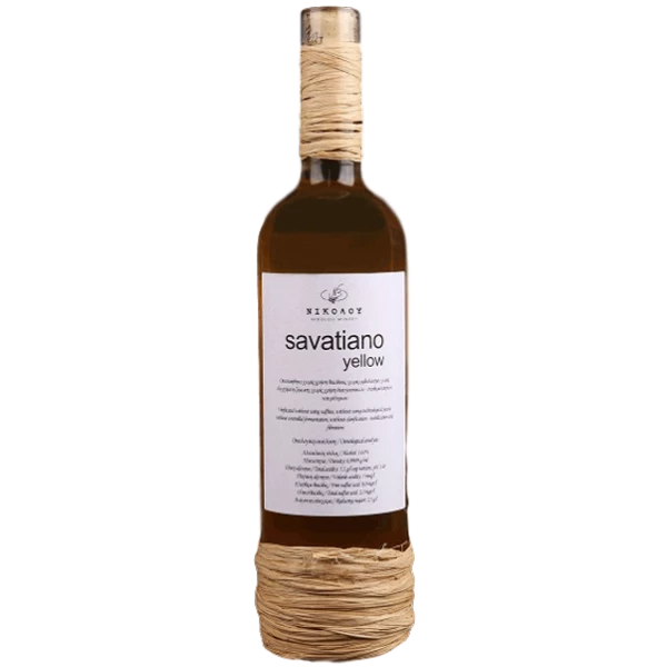 Η πρόταση του Οινοποιείου Νικολού στα φυσικά κρασιά είναι ένα Σαββατιανό χωρίς προσθήκη θειωδών και χωρίς καμία επεξεργασία μέχρι την εμφιάλωση. Η ζύμωση γίνεται με τις γηγενείς ζύμες και ολοκληρώνεται σε βαρέλια (δρυς και ακακία). Το 20% των σταφυλιών έχουν υποστεί ερυθρή οινοποίηση, κάτι που του προσδίδει ξεχωριστό κίτρινο χρώμα. Έντονο άρωμα τροπικών και πυρηνόκαρπων φρούτων, με λιπαρή παλέτα και γλυκιά επίγευση.