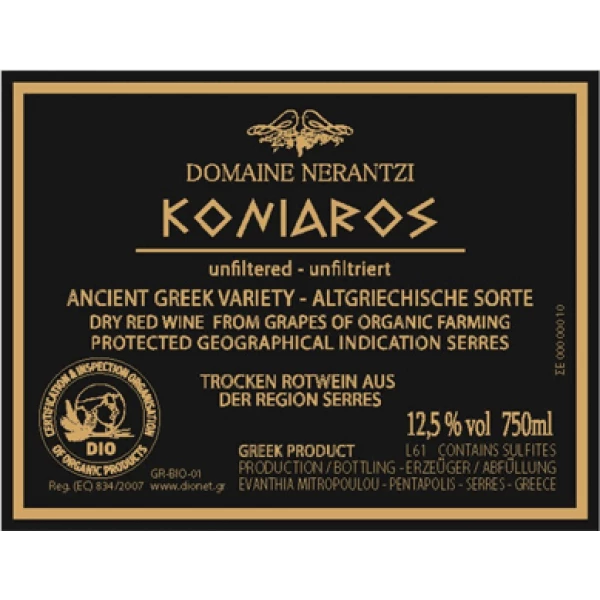 Η αρχαία ελληνική ποικιλία, που διέσωσε και καλλιεργεί το κτήμα Νεραντζή στους αμπελώνες του, παρουσιάζει ιδιαίτερο ενδιαφέρον, δίνοντας ένα κρασί με μεγάλες δυνατότητες παλαίωσης. Πυκνό φρούτο, αποξηραμένα βότανα και μελάνι επικρατούν στην ευγενική του μύτη, ενώ το στόμα μοιάζει στρογγυλεμένο, με αρκετά καλό όγκο και τανίνες νεαρές ακόμα που ωστόσο του επιφυλάσσουν λαμπρό μέλλον. Ελαφρώς καπνιστή αίσθηση με νύξεις από μπέικον κι επίγευση μεγάλης διάρκειας.
