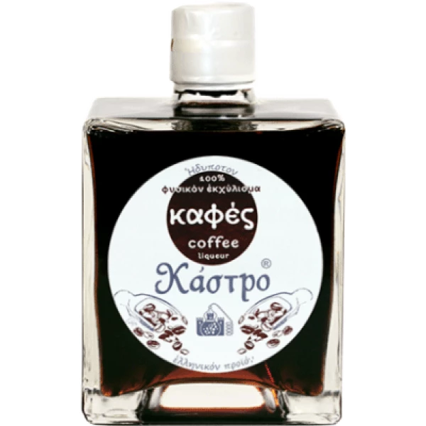 Το λικέρ ΚΑΦΕΣ ΚΑΣΤΡΟ παράγεται από 100% φυσικά εκχυλίσματα κόκκων καφέ με παραδοσιακό τρόπο.